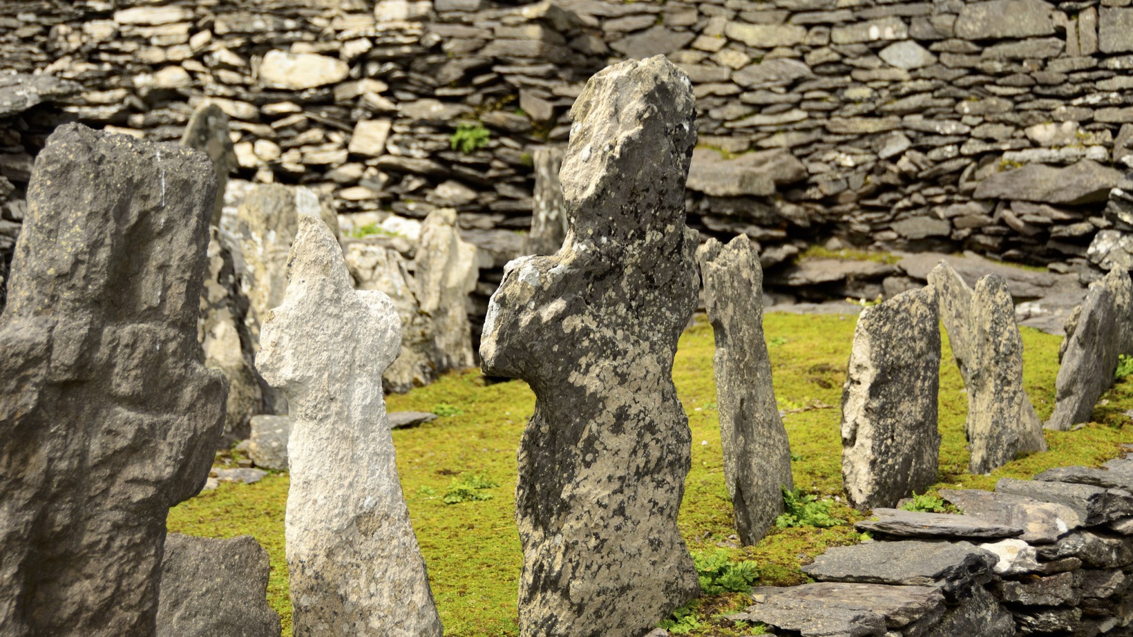 ‘’ Un incredibile, impossibile, folle posto, che ancora induce devoti a fare ‘’stazioni’’ ad ogni gradino, a strisciare in antri bui ad altitudini impensabili, e a baciare ‘’pietre di panico’’ che si gettano a 700 piedi d’altezza sull’Atlantico ‘’. Il premio Nobel per la letteratura Bernard Shaw descriveva così nel 1910 il santuario di Skellig Michael. In effetti, il piccolo monastero fatto di pietra in cima al monte che domina l’isola, da la sensazione d’infinito quando si getta lo sguardo tutt’intorno, ad immaginare il cielo stellato nelle notti d’estate, si doveva assaporare la vicinanza di Dio. La leggenda vuole che l’Arcangelo sia apparso su quest’isola a San Patrizio per aiutarlo a liberare l’Irlanda dal demonio. Per questo l’isola è priva di serpenti, la causa è l’era glaciale, ma a noi piace la storia di Patrizio che libera l’Irlanda dai rettili, simbolo del male. Dopo l’apparizione, Patrizio favorì la combinazione di molti elementi cristiani e pagani, con lui nacque la corrente del Cristianesimo celtico per conservare le radici e le tradizioni storiche del popolo irlandese, introdusse infine il simbolo della croce solare sulla croce latina, dando origine alla croce celtica che divenne il simbolo della nuova corrente cristiana